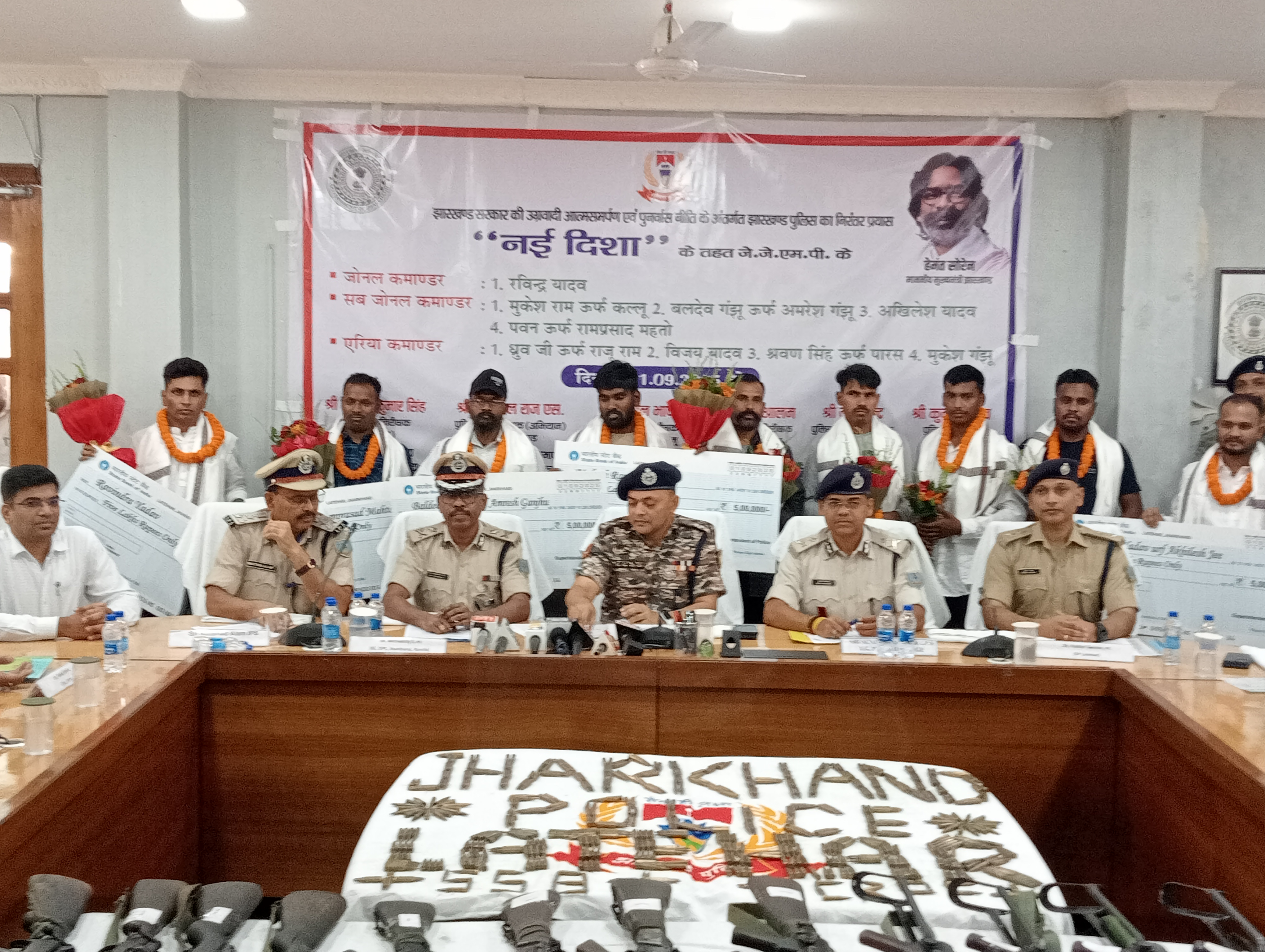 जेजेएमपी से जुड़े जिन नक्सलियों ने आत्मसमर्पण किया, उनमें पांच लाख के इनामी चार उग्रवादी, संगठन का सुप्रीमो रविंद्र यादव, सब जोनल कमांडर अखिलेश यादव, बलदेव गंझु, मुकेश राम तथा तीन लाख का ईनामी पवन उर्फ राम प्रसाद महतो, एरिया कमांडर राजू राम, विजय यादव, श्रवण सिंह और मुकेश गंझु शामिल हैं।